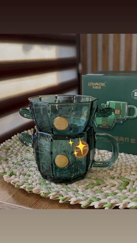 ست ماگ و کاسه (پیاله) شیشهای طرح کاکتوس Lovwish